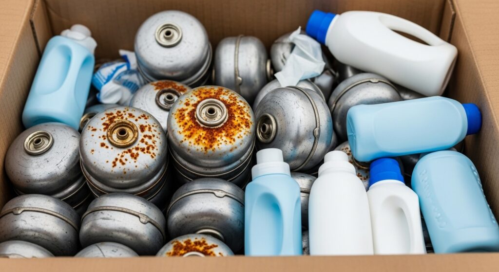 愛知県安城市|物置き整理で出てきたガス缶と洗剤を一括回収|サビあり・中身入りでも安全に
